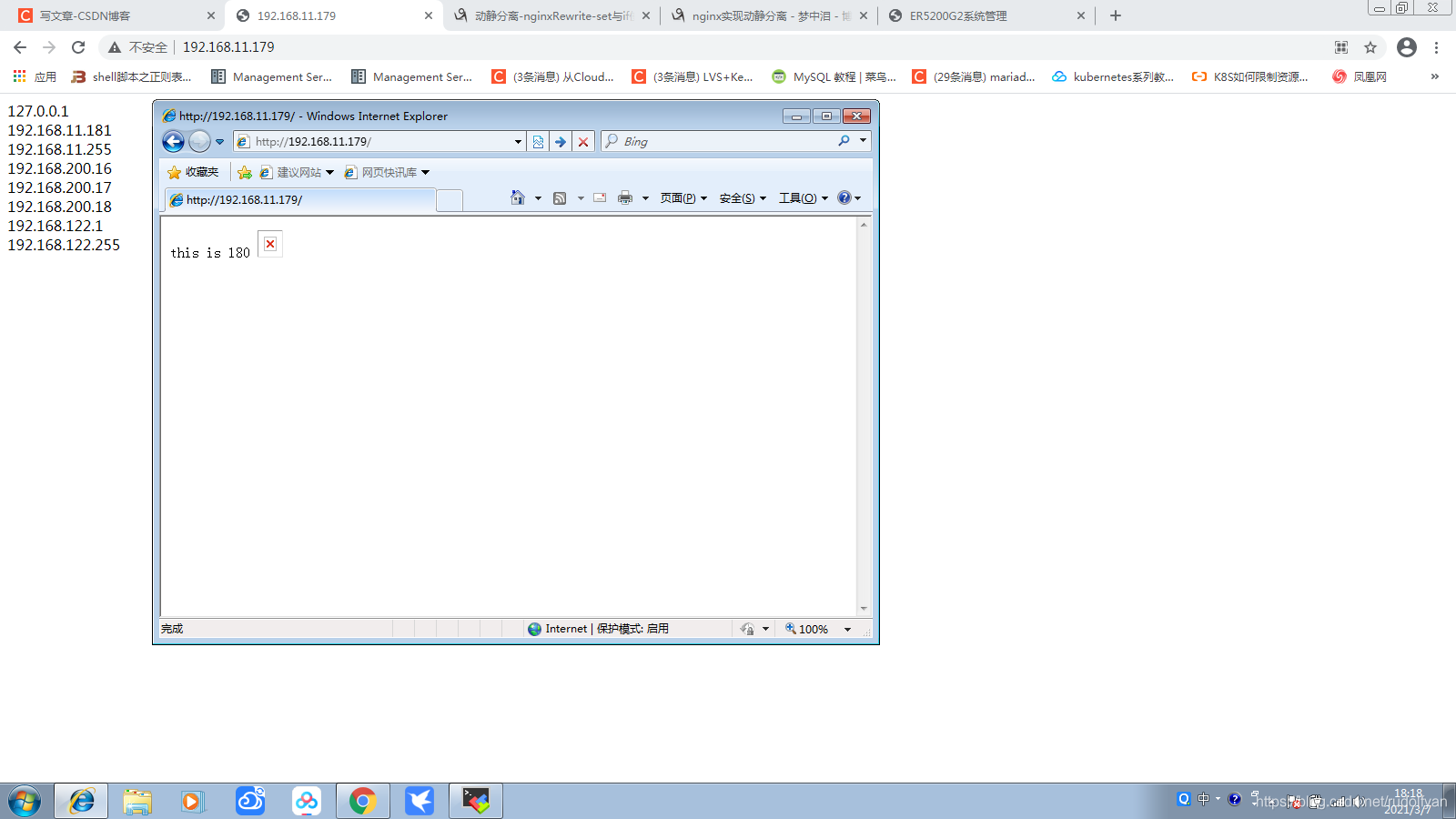 5) 测试,上门是chrome浏览器,转发到181,第二个转发到180了,